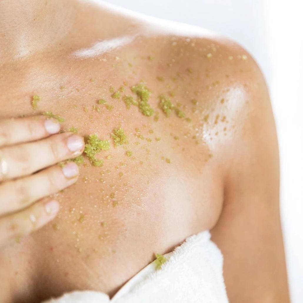 Piling za tijelo od matcha zelenog čaja i soli za nevjerojatno mekanu, nahranjenu, glatku i mirišljavu kožu. Piling za tijelo obnavlja površinski sloj kože i na taj način pomaže riješiti problem s uraslim dlačicama, manjim strijama i manjim ožiljcima, sa suhom kožom i ostalim kožnim problemima. Zahvaljujući sastojcima, piling regenerira, hrani i zaglađuje kožu tijela sklonu površinskim nepravilnostima.